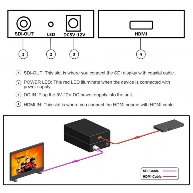 2. Output port: 1x SDI(SDI/HD-SD/3G-SDI)