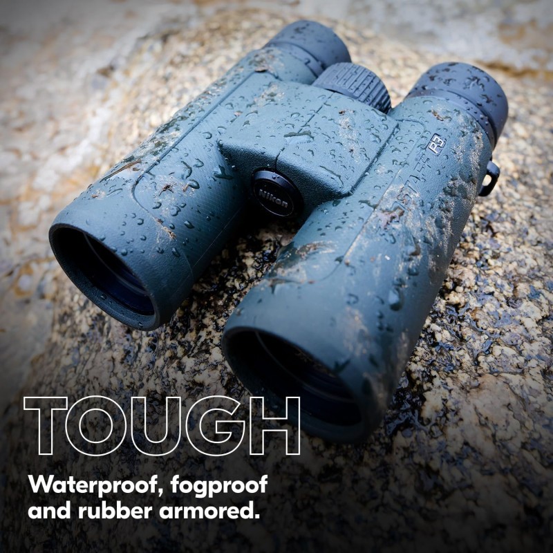 Nikon has manufactured the PROSTAFF P3 binoculars, as well as many other of its optics, with a high-eyepoint design for long eye relief without vignetting. This provides a clear field of view for everyone, even when the user is wearing eyeglasses.