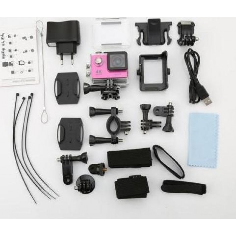 Package Contents | Package Contents: 1 x Action Camera, 1 x Waterproof Housing, 1 x Handlebar Pole Mount, 1 x Base Mount with Long Screw, 1 x J-Shaped Mount, 1 x Tripod Mount Adapter, 3 x Connector with Screw, 1 x Mount Adapter, 1 x Clip Case, 1 x Clip Mount, 2 x Helmet Mount, 4 x Bandage, 1 x Battery, 1 x Lens Cleaning Cloth, 4 x Tether, 1 x Metal Tether, 1 x Protective Backdoor, 1 x USB Cable. |