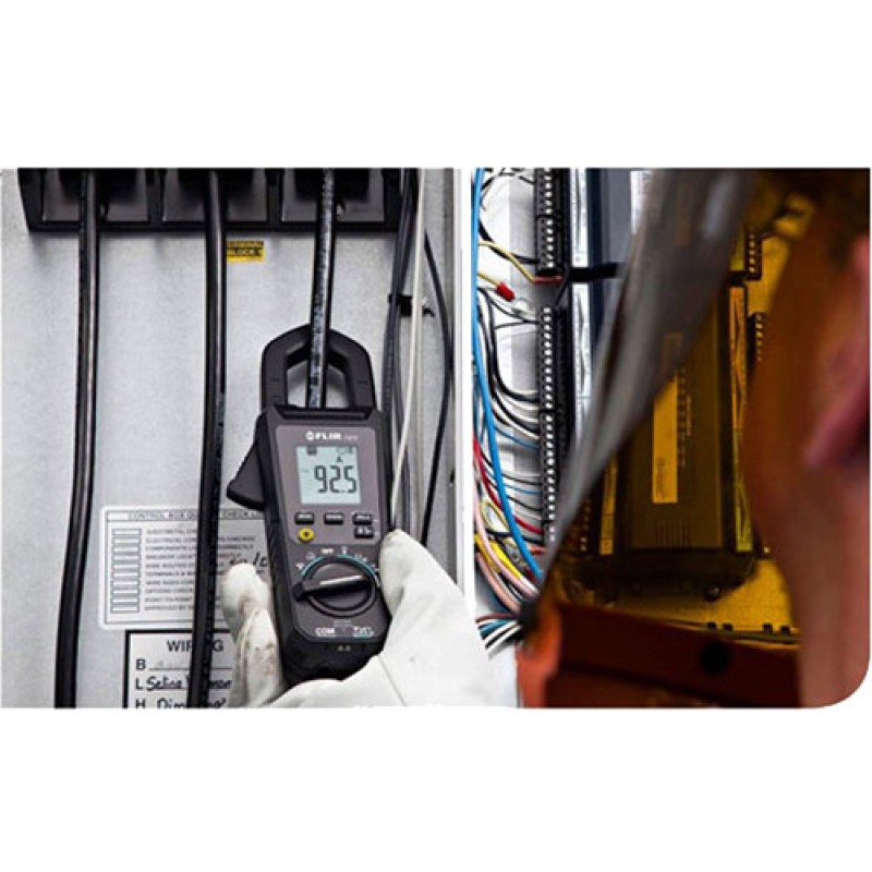 The CM74 RMS Clamp Meter with VFD Mode from FLIR gives you better access to wiring in hard-to-reach places and provides the measurement capabilities you need for advanced troubleshooting. Made with a narrow jaw and high-powered LED worklights, the CM74 makes it easier to take measurements in dark, crowded panels and cabinets. The clamp meter supports Autoranging, True RMS Voltage, and Current, LoZ, Inrush, and VFD modes. When used in VFD mode, it filters variable frequency drive signals and provides accurate voltage and frequency measurements. When used in LoZ mode, the clamp meter eliminates ghost voltage readings associated with long-run applications.