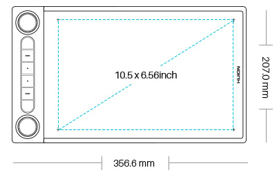 Perfect Symmetry Featuring a perfect symmetrical design, Inspiroy Dial 2 is great for both left-handed or right-handed user. 10.5 x6.5" large active area is ideal for use with large or multiple monitors. It is crafted for efficiency, stability and precision. |