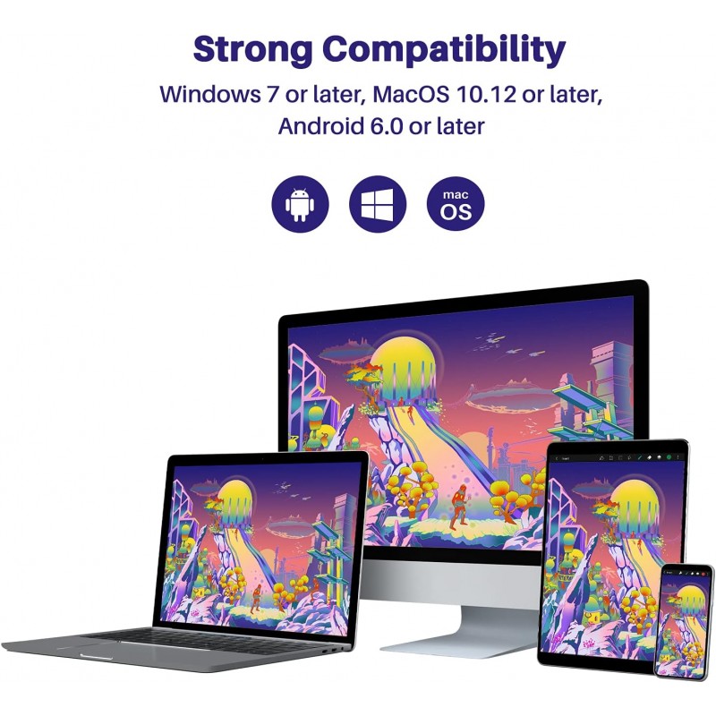 【 Compatiable with Mac/Windows/Android 】 Kamvas 24 drawing monitor could work with Mac(MacOS 10.12 or later) and Windows computer(Windows 7 or later), moreover, you can connect it to your android devces with the included full-featured USB-C cable to release your inspiration whenever and wherever you want. Note:Your android device is supposed to support USB3.1 GEN1 or DP 1.2.