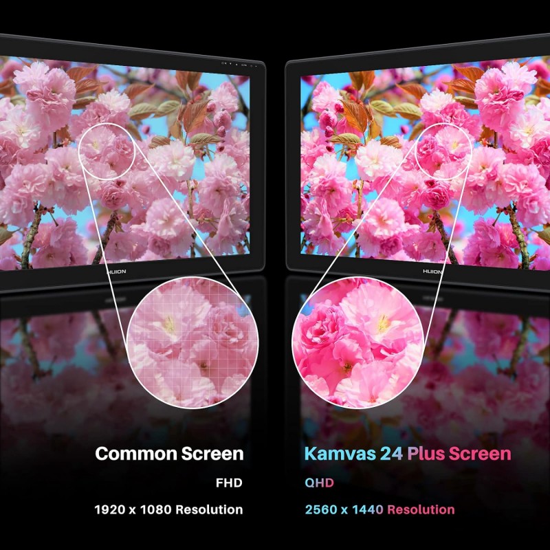 【Stunning Visuals 】 The Kamvas 24 graphic monitor with 23.8" 2.5K QHD IPS screen delivers stunning, life-like image quality with high pixel density and fine detail. Together with full lamination technology, and anti-glare glass design, the graphics drawing monitors provide more highly immersive image quality and can also present the same image quality within a wide 178° viewing angle.