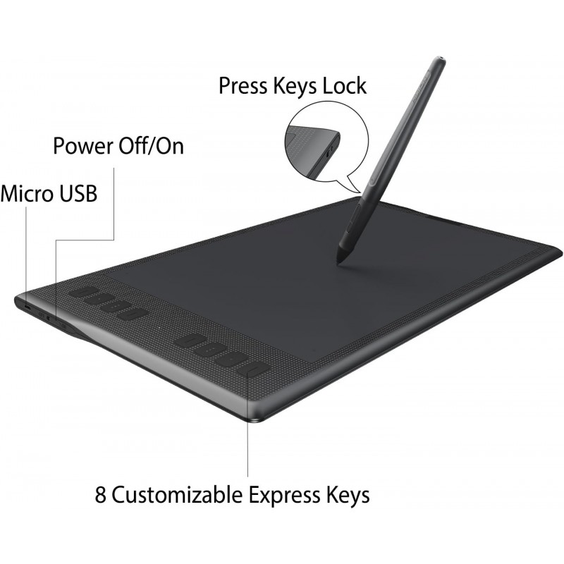 Huge Active Area -11 inch of drawing area made with high end materials giving you a large working space as well as a paper-like finish. High Capacity Battery: A 2500mAh built-in battery provides over 40 hours battery life, no need to worry the digital drawing tablet shutting down or running out of juice.