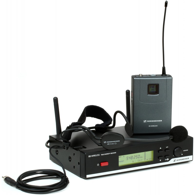 Express yourself, hands free. Compact bodypack system with a cardioid headworn mic for crystal-clear sound, even in noisy surroundings. Transmitter features an illuminated mute button, 10 hours of operation, and 960 tunable frequencies. Rugged ME3 headmic provides excellent pop protection. All-metal, True Diversity receiver offers intuitive scan and sync functions that ensure trouble-free operation.